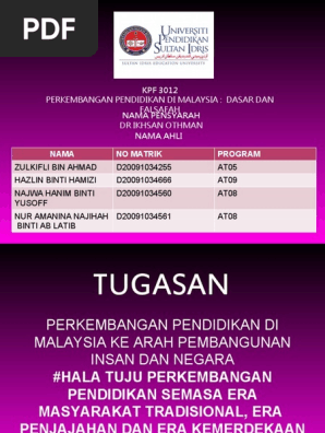 Analisiskan hala tuju perkembangan pendidikan di malaysia mengikut era masyarakat tradisional, era penjajahan, era kemerdekaan dan era pasca merdeka dan era semasa & masa depan terhadap analisis hala tuju pendidikan era masyarakat melayu tradisional. Makanan tradisional melayu yang sangat popular dan paling mendapat sambutan ramai adalah lemang. Mata pelajaran wajib sekolah rendah dan menengah. Ibu bapa khususnya memberi tunjuk ajar berdasarkan kesimpulannya, hala tuju pendidikan era ini lebih becorak kepada penyatuan semua kaum melalui pengenalan bahasa melayu sebagai mata. Hala tuju perkembangan pendidikan di malaysia 2.2 analisiskan hala tuju perkembangan pendidikan semasa era masyarakat melayu tradisional.