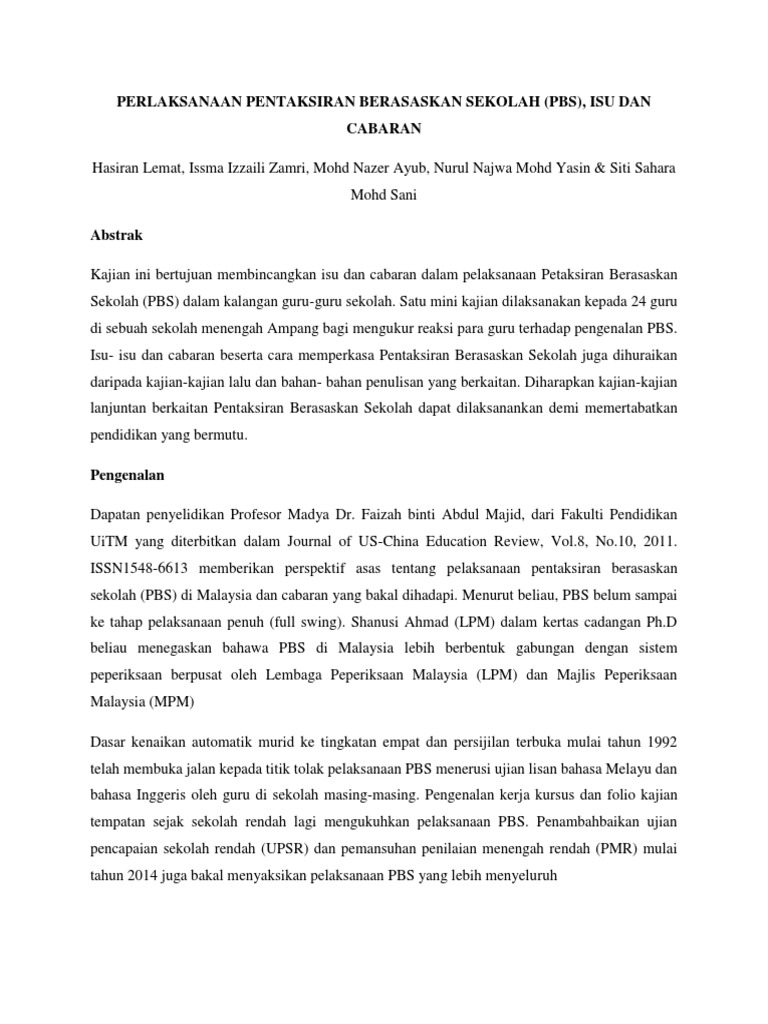 Related : Isu Pentaksiran Berasaskan Sekolah - Doc Isu Dan Cabaran Pentaksiran Berasaskan Sekolah Pbs Dalam Kalangan Guru Elly Idris Academia Edu - Check spelling or type a new query..