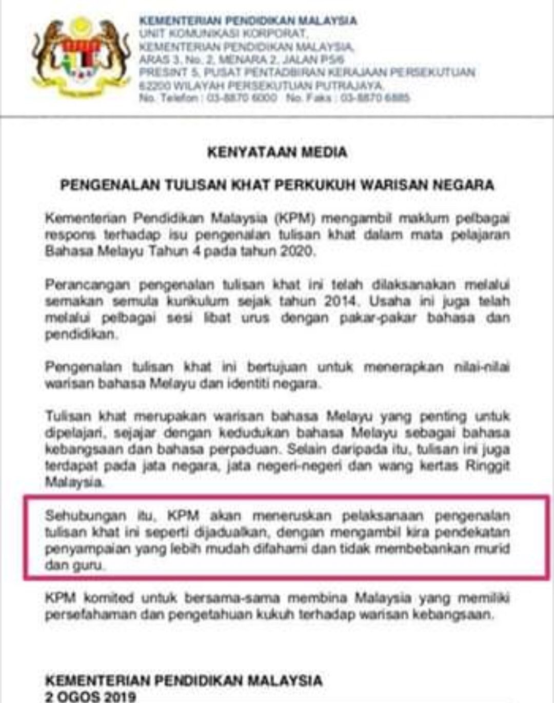 Hanya menggunakan logo jata negara dan perkataan kementerian pendidikan malaysia.
