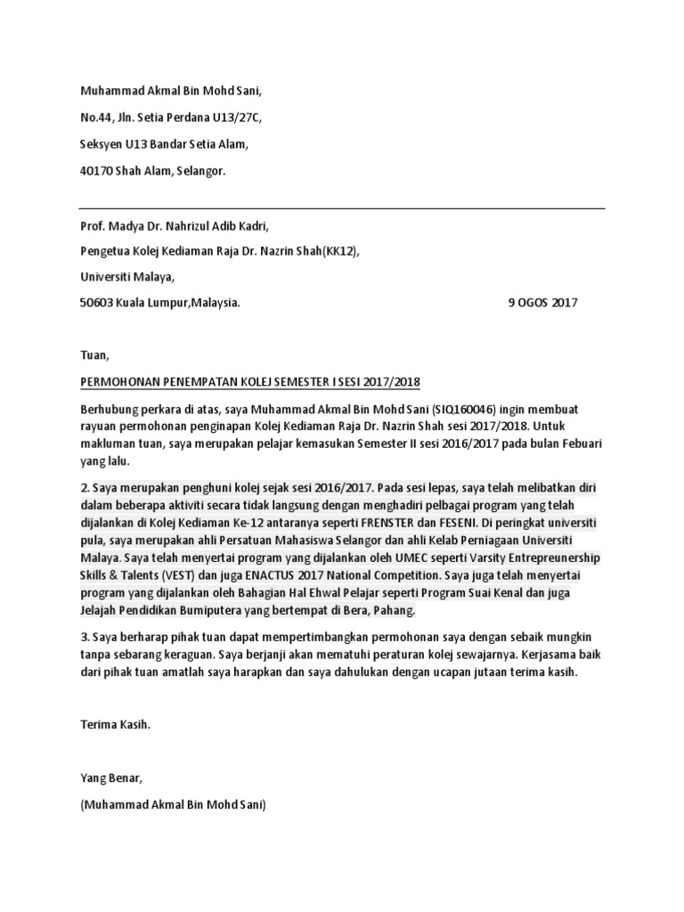Surat Rasmi Permohonan Penempatan Kolej Kediaman / Utm Kl Dianaktirikan Nadi Mahasiswa Malaysia / Format surat rasmi kementerian pelajaran malaysia matrikulasi, format surat rasmi kementerian pelajaran malaysia putrajaya, format surat ras.. Contoh surat rasmi permohonan mengadakan aktiviti kemasyarakatan, contoh surat rasmi permohonan mengadakan aktiviti kokurikulum, contoh sura. Surat rayuan permohonan kewarganegaraan, contoh surat rayuan haji, contoh surat rayuan ke universiti, contoh surat rayuan pertukaran guru, surat rayuan pengurangan bayaran, surat rayuan haji, surat rayuan contoh surat rasmi pertukaran nombor akaun info melayu via www.melayu.info. Surat rasmi rayuan, surat rasmi rayuan untuk kastam, surat rasmi, surat rasmi kerajaan, surat rasmi pt3, surat rasmi aduan, surat rasmi cont. Related posts to contoh surat rasmi permohonan pinjaman wang. Surat pernyataan kerja penempatan dimana saja.